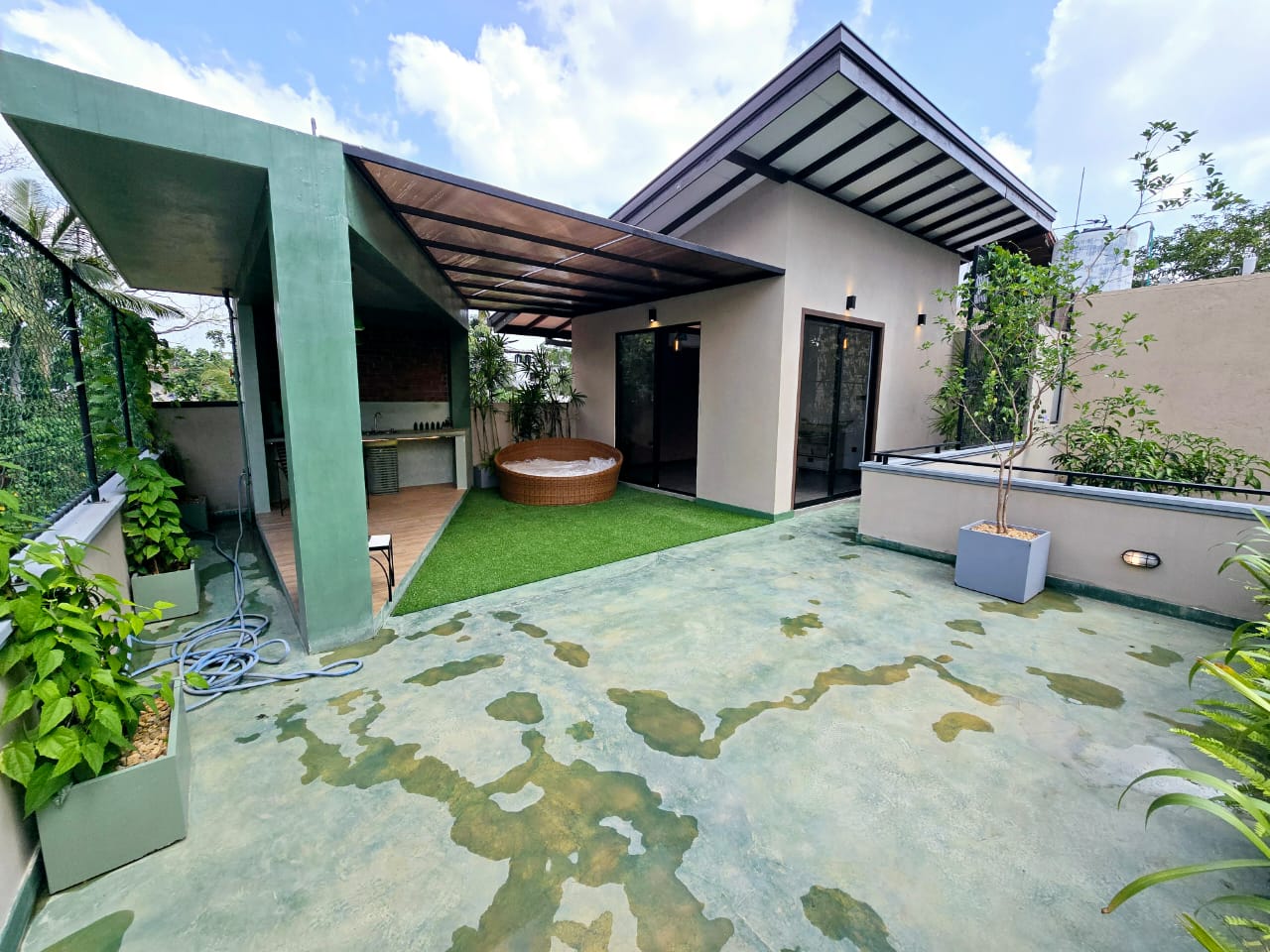 ✅ Expansive Entertainment Area on the 2nd-floor terrace, complete with a BBQ setup and TV console.